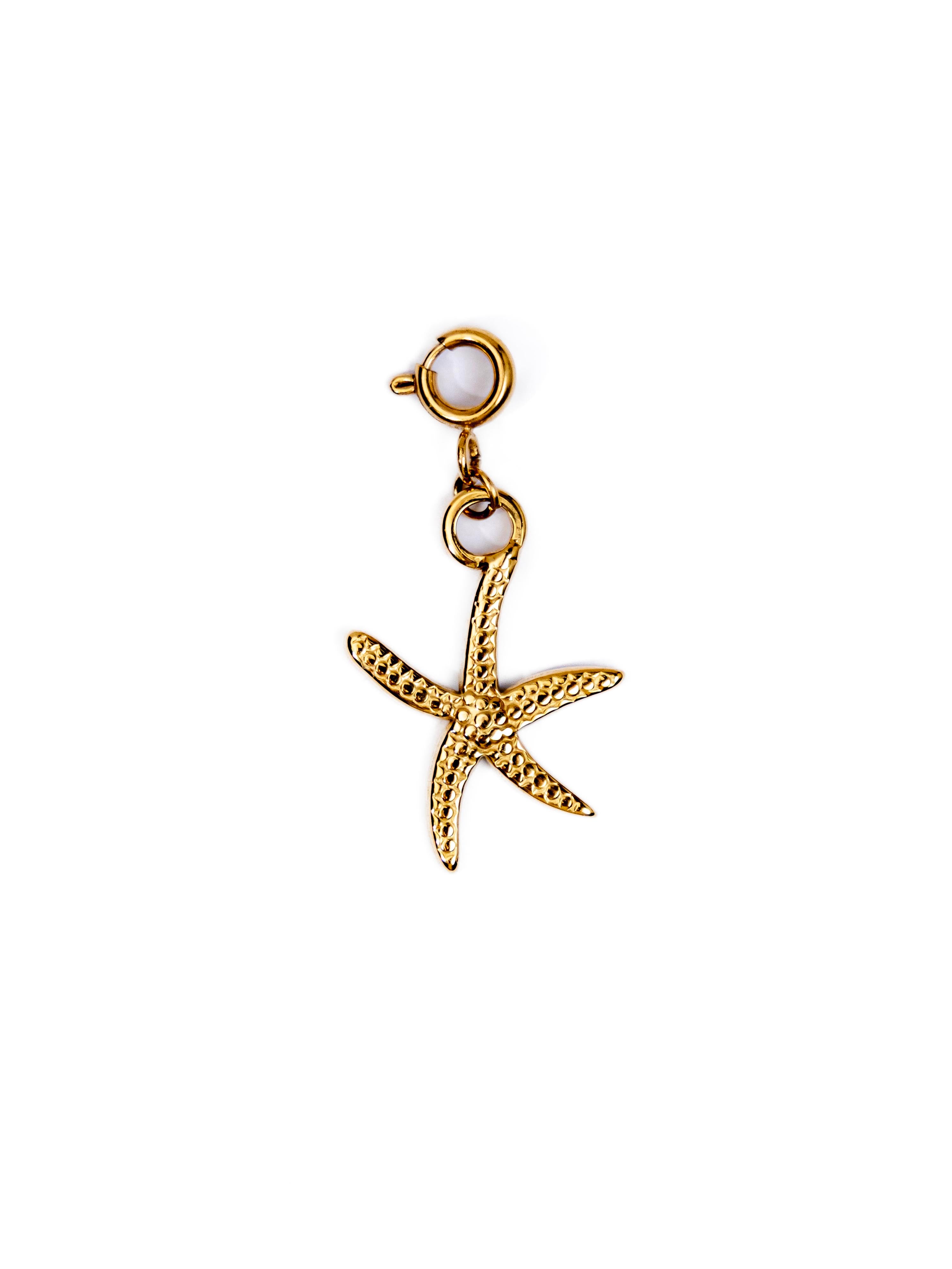Bring a touch of seaside charm to your jewelry with this beautifully textured gold starfish charm. Its detailed design captures the natural beauty of the ocean, making it the perfect piece to add a coastal, playful vibe to any necklace or bracelet.