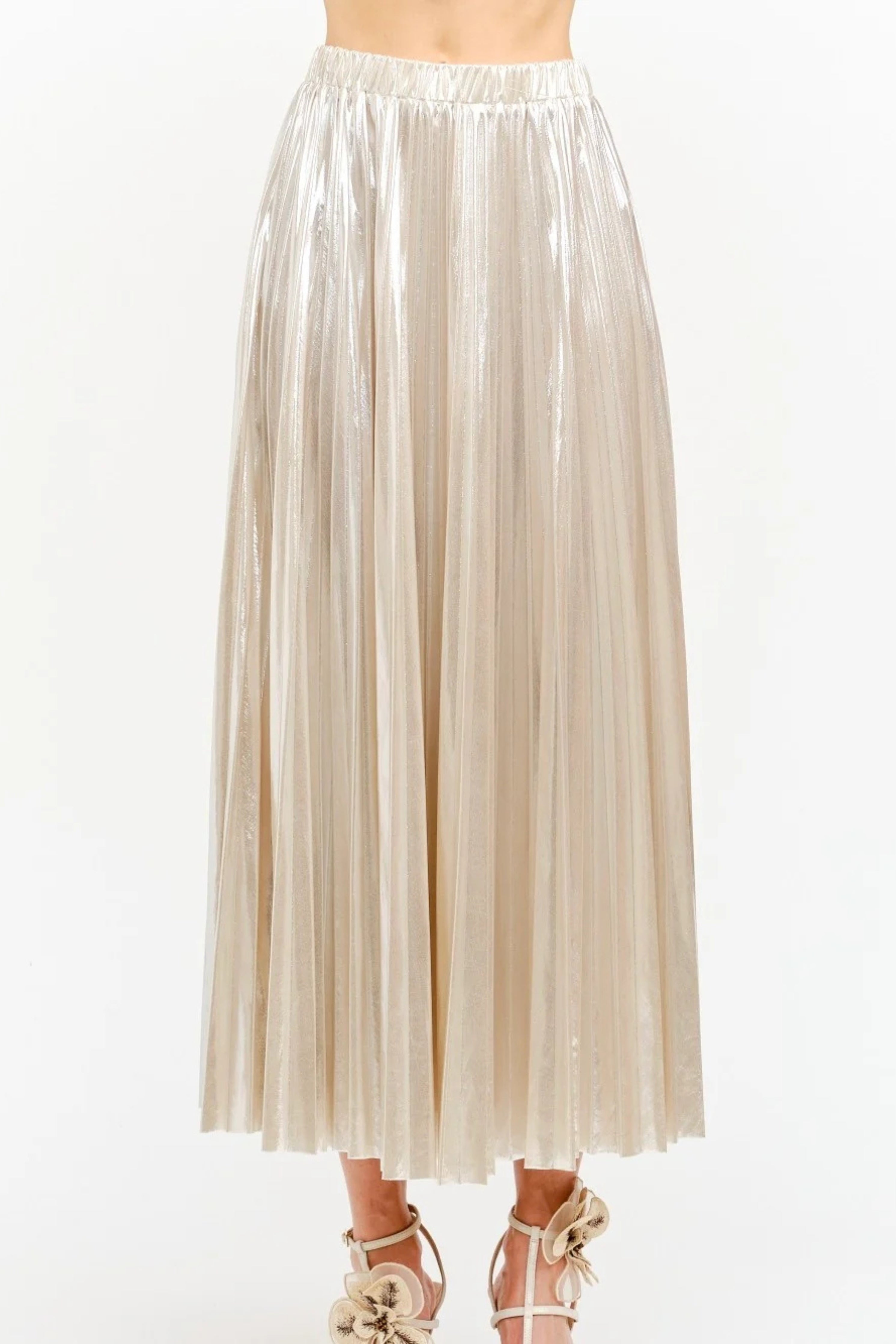 Pleated Metallic Midi Skirt