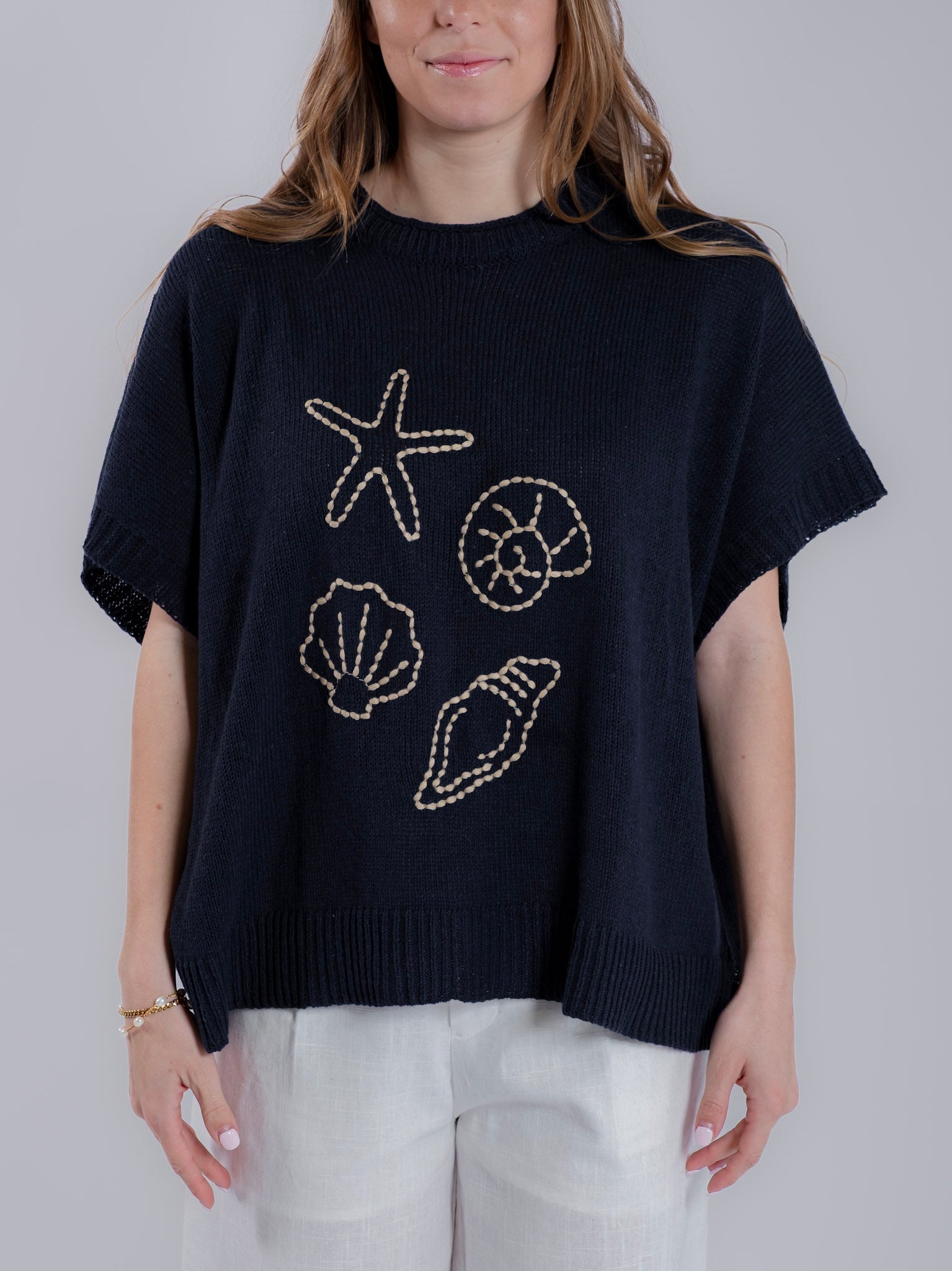 Coastal charm meets effortless comfort in the Hurley Beach Sweater. Designed with a relaxed, easy fit and lightweight knit fabric, this short-sleeve sweater features playful seaside-inspired embroidery for a polished yet laid-back look. Whether you choose the classic shell motif or the statement lobster design, this piece adds the perfect coastal touch to your everyday wardrobe.