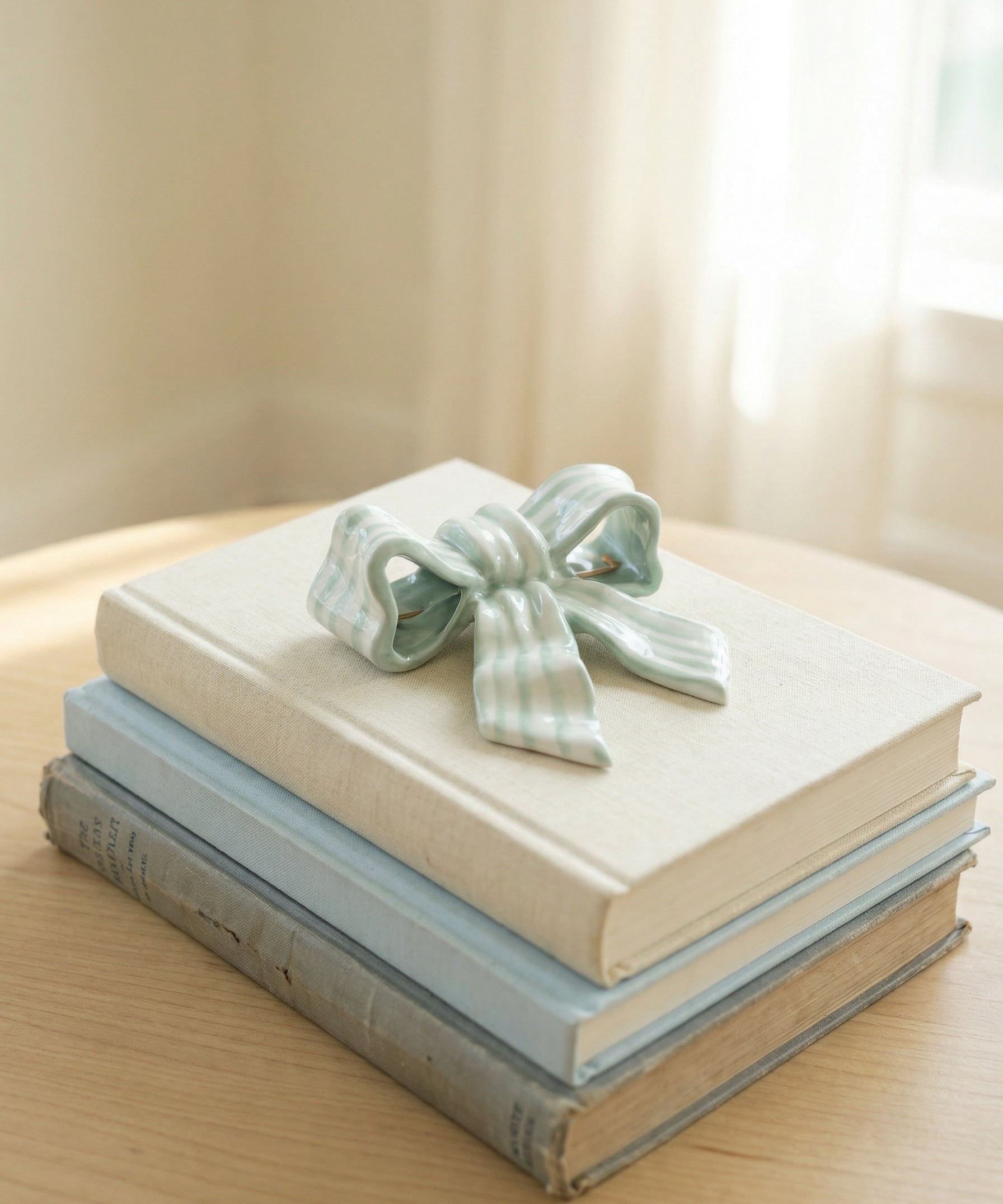 Stoneware Striped Bow Decor