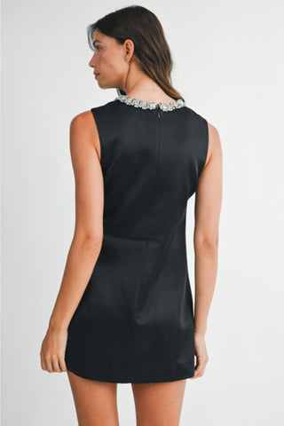 Sleeveless Square Neck Tweed Button Down Dress with Front Pockets