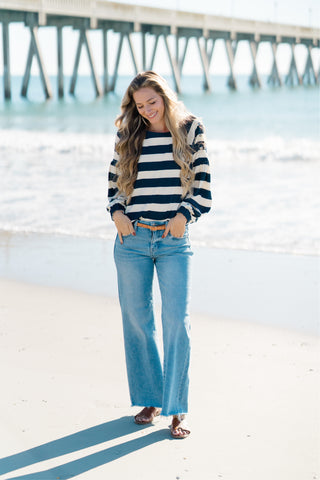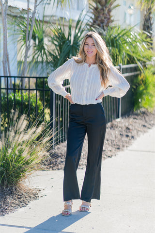 Eyelet Collar V-Neck Button Down Long Sleeve Blouse