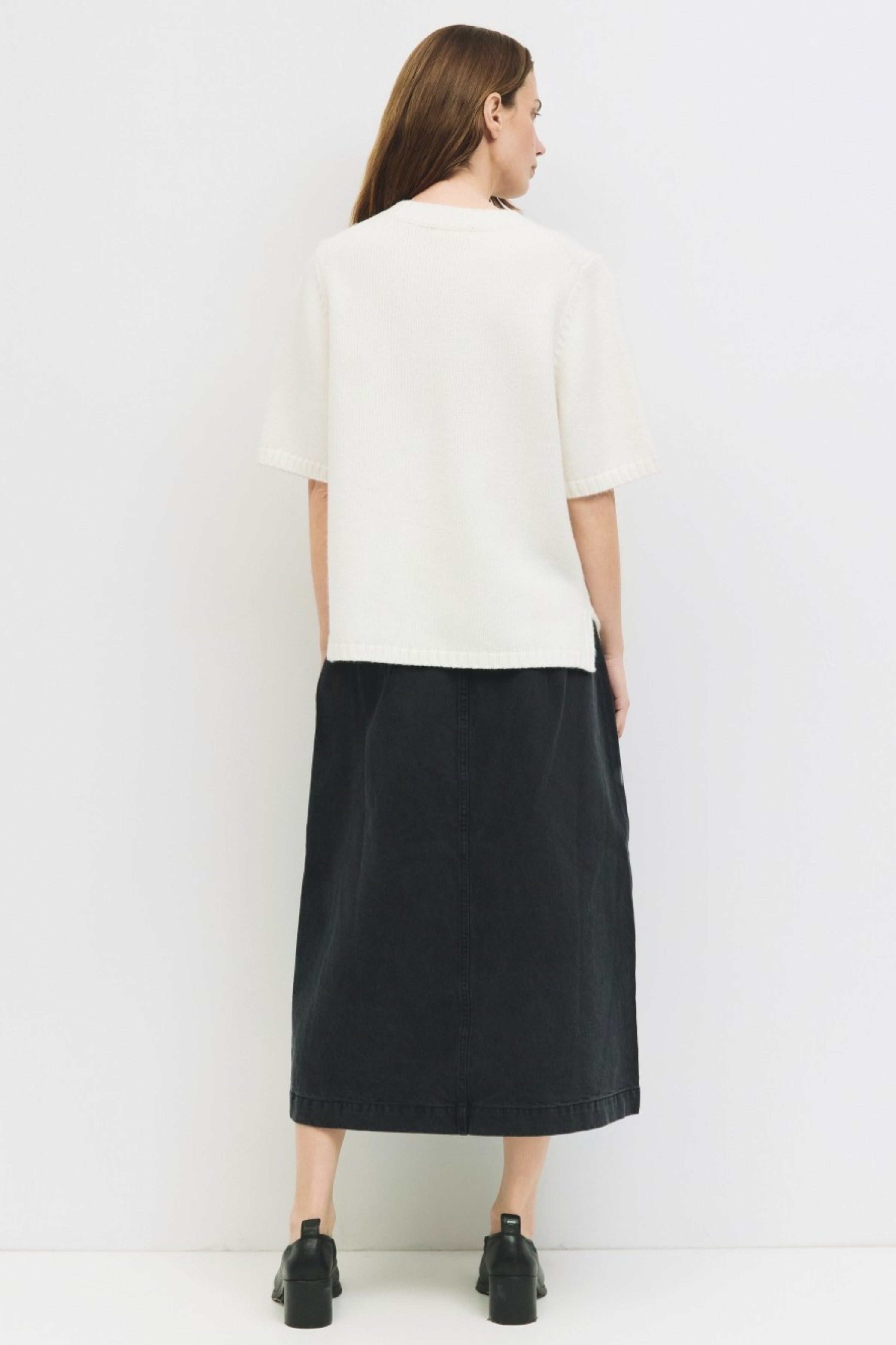 This boxy crew neck knit top combines minimal design with everyday comfort. Crafted from a soft, mid-weight knit, it features a relaxed silhouette and dropped shoulders for a laid-back yet polished look.