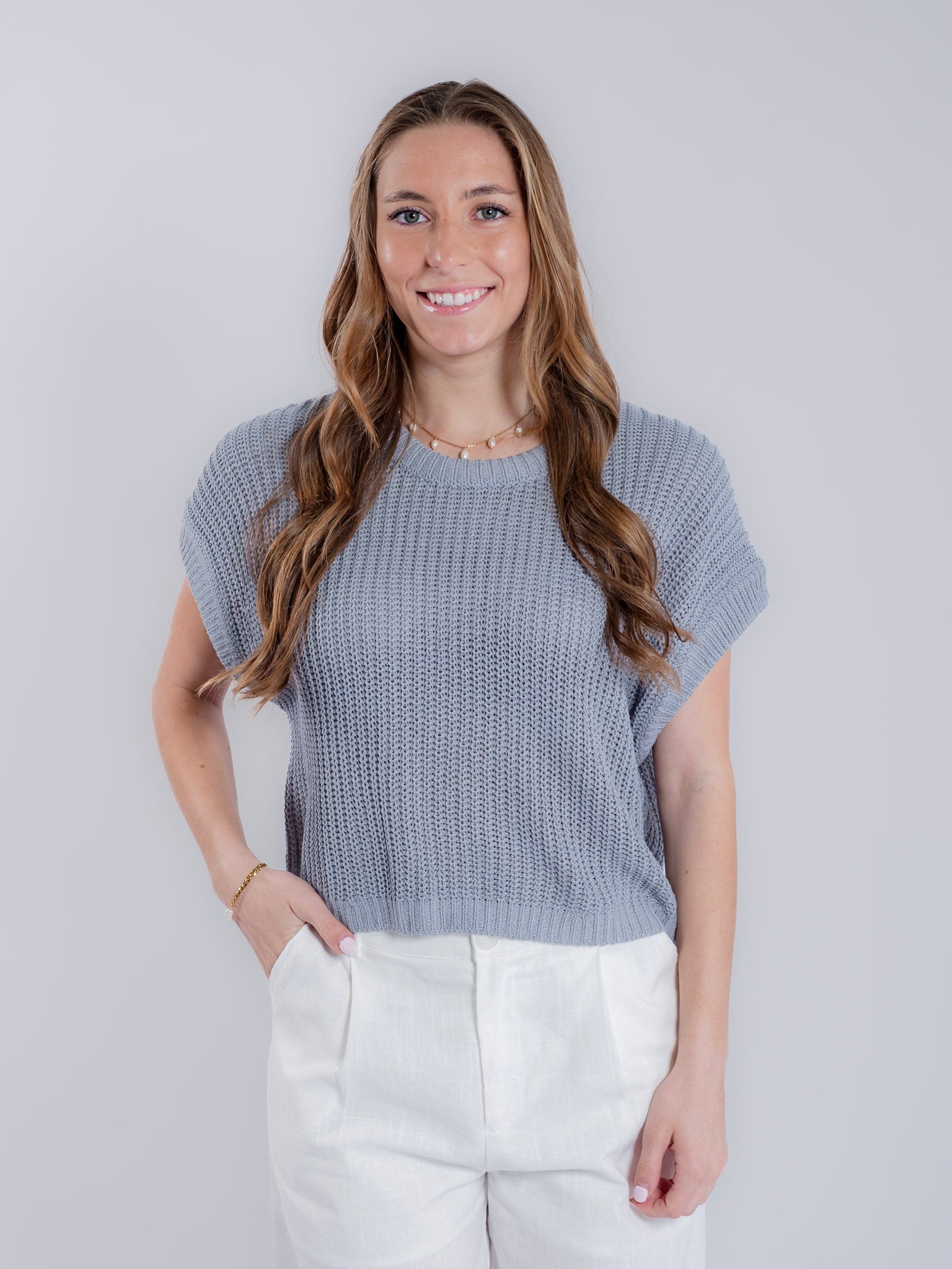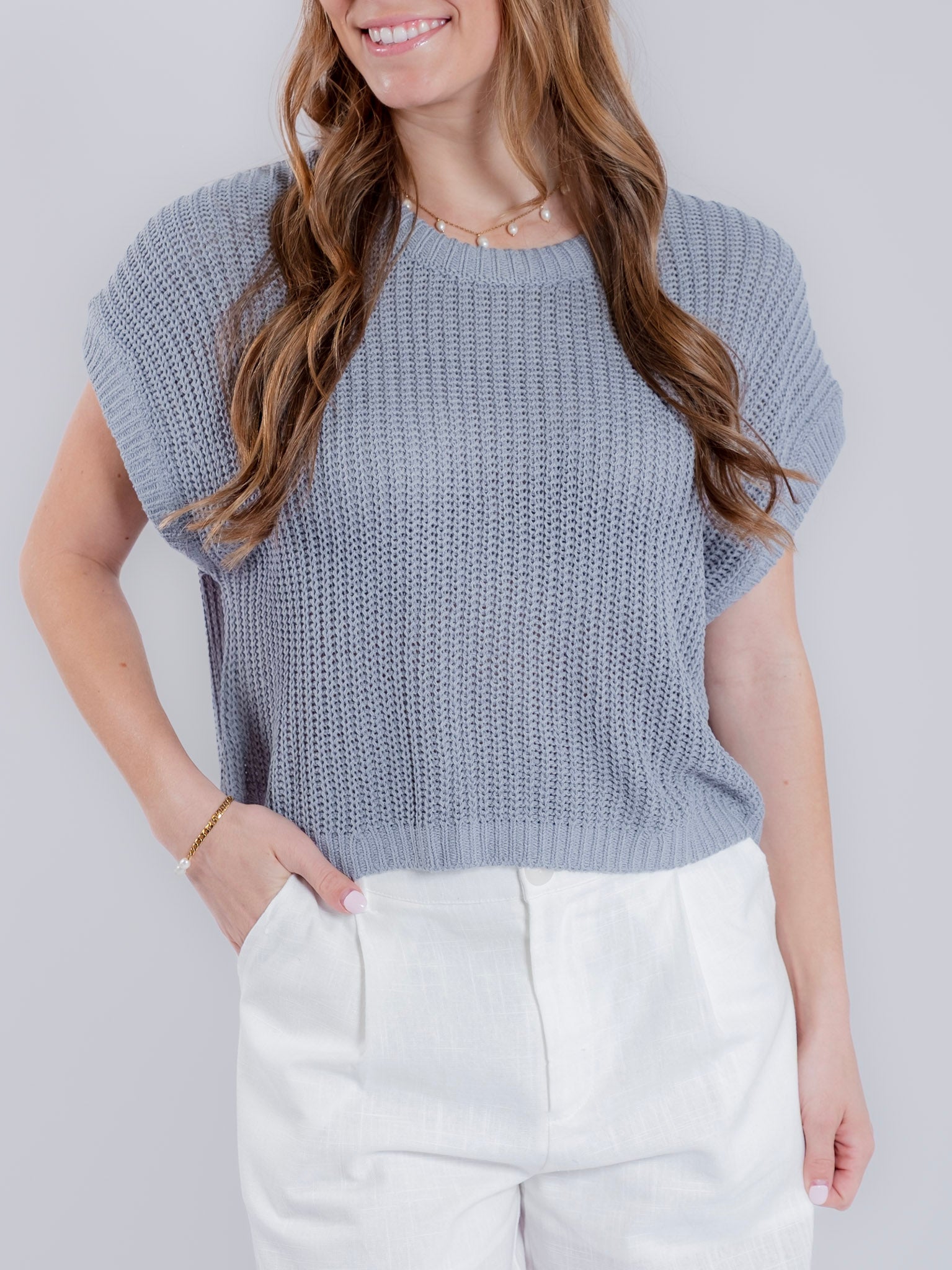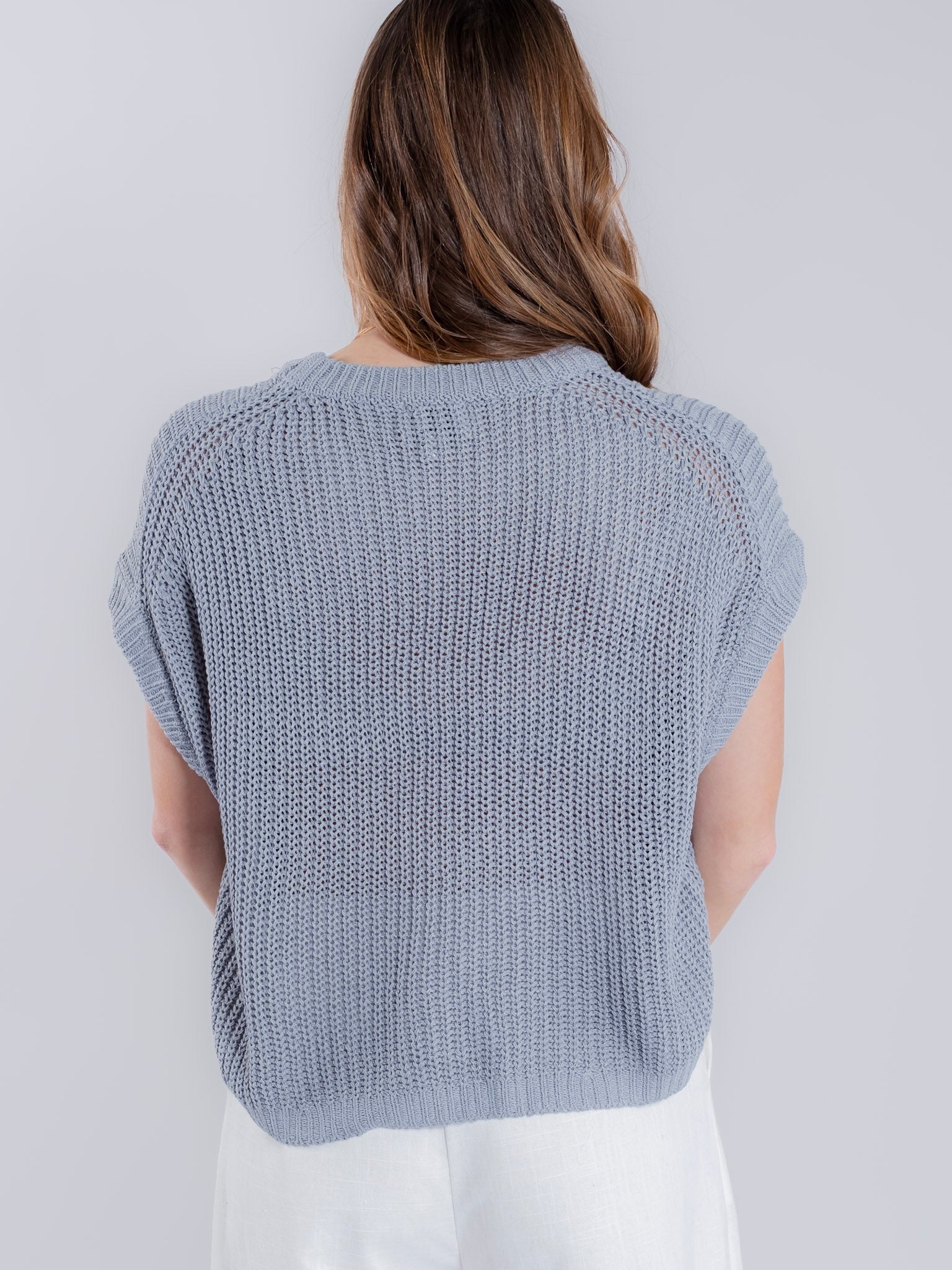 A relaxed yet chic staple, this dolman sleeve knitted top is the perfect layering piece for year-round style. Crafted in a breathable open-knit design, it features a classic crew neckline, loose short sleeves, and a slightly boxy fit for an effortlessly laid-back look.
