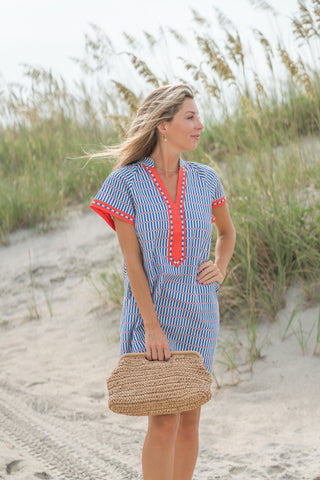 Elevate your wardrobe with the Contrast Trim Striped Short Sleeve Dress, designed to blend classic stripes with modern detailing. Its flattering short sleeves and sharp contrast trim create a polished look perfect for any occasion.