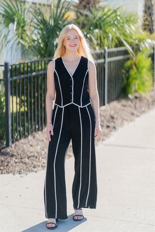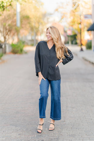 Botanical Print ¾ Sleeve Top with Contrast Tassel Tie V-neck