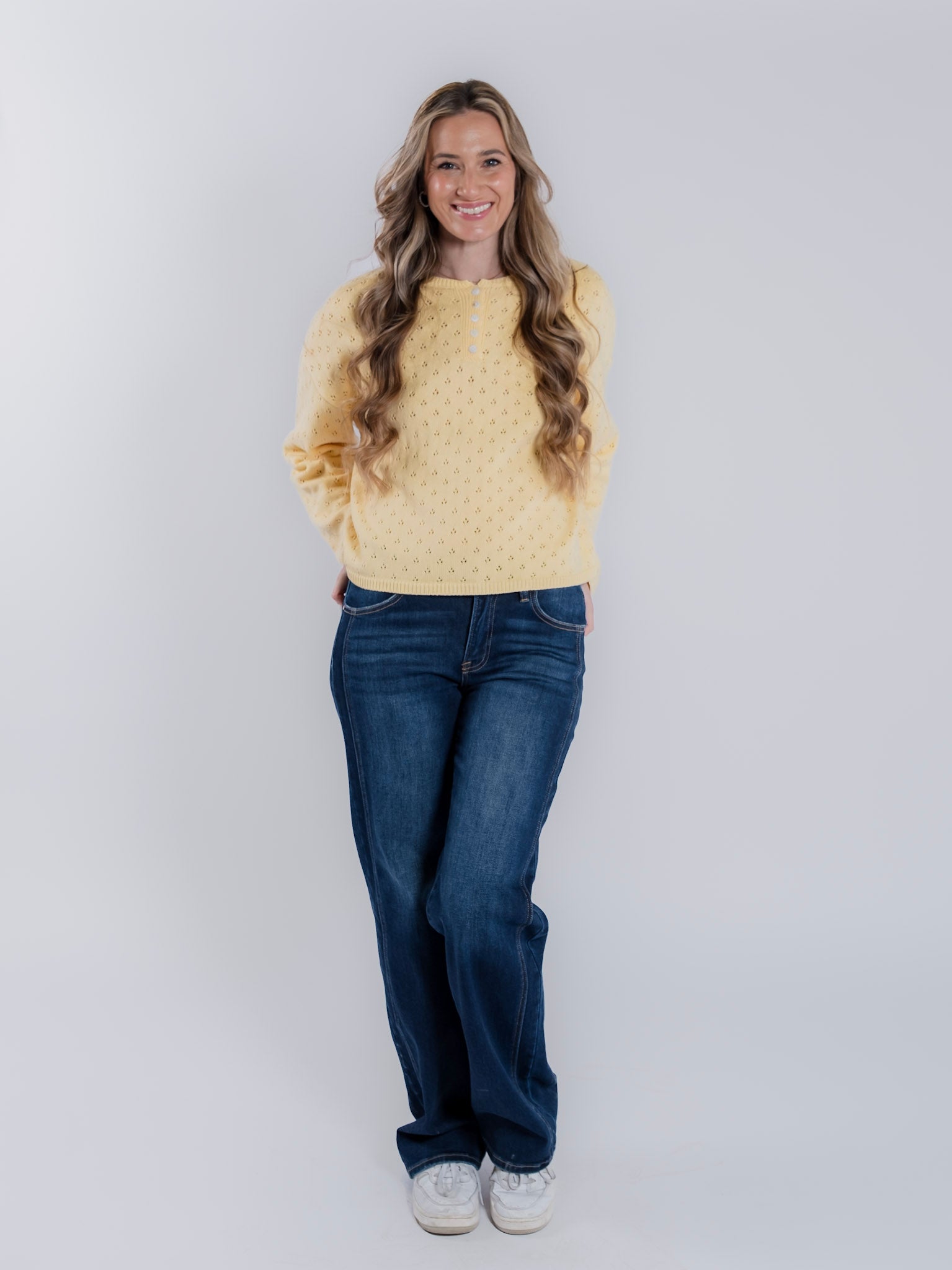 Soft, feminine, and effortlessly stylish, the Drop Shoulder Eyelet Pullover Sweater is a go-to piece for easy everyday wear. Designed with a relaxed drop-shoulder silhouette and delicate eyelet detailing throughout, this sweater adds subtle texture and charm to a classic pullover style. The lightweight knit makes it perfect for layering or wearing on its own during transitional seasons.
