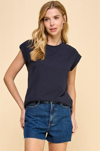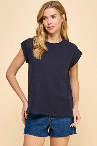 This Rolled Cap Sleeve Cotton Top is an easy staple you’ll reach for again and again. Made with soft, breathable cotton, it features a relaxed fit and rolled cap sleeves that add just the right touch of detail.
