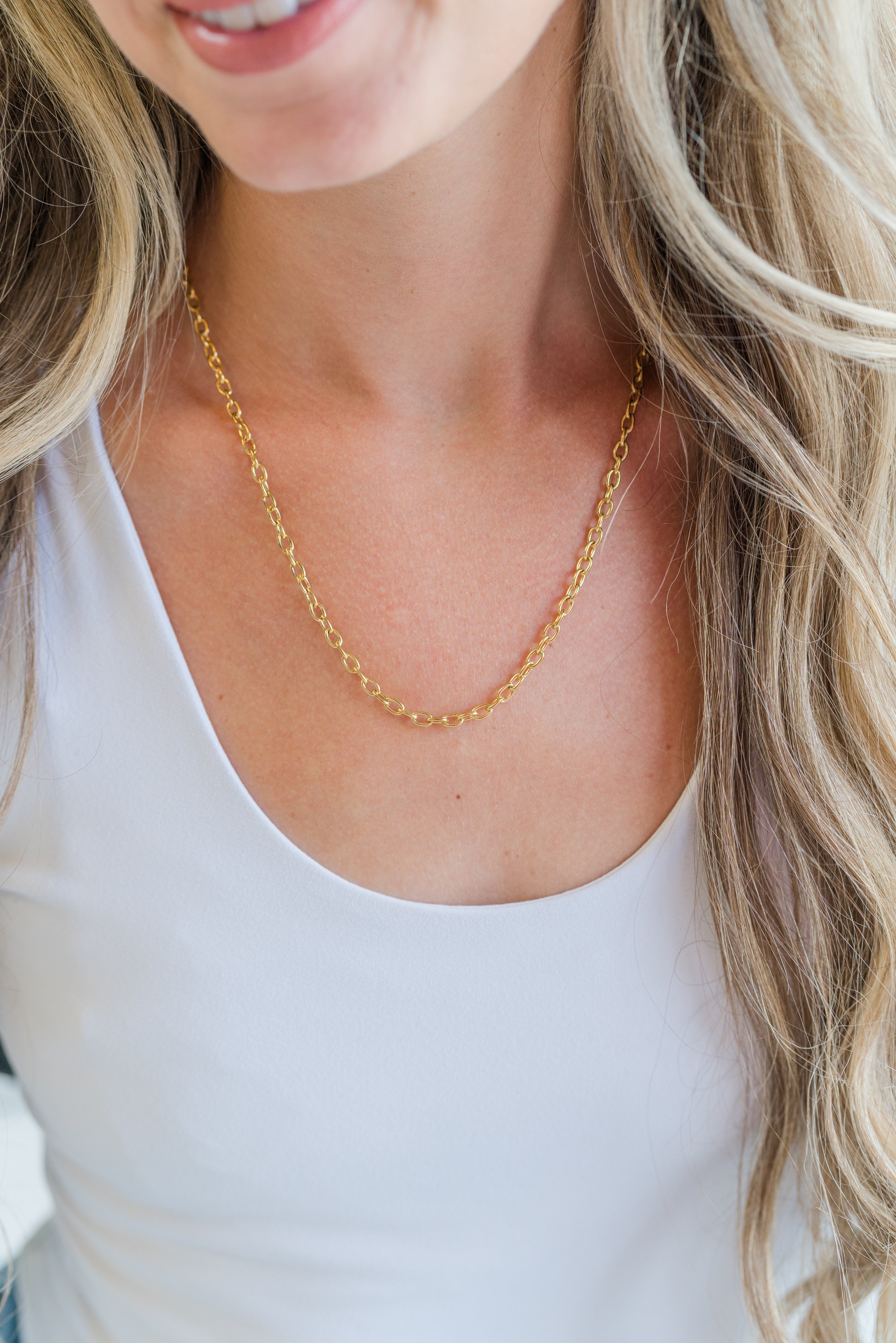 The perfect base for your charm collection, this dainty chain features delicate interlocking links that balance elegance with everyday wearability. Lightweight yet durable, it’s designed to hold your favorite charms or shine beautifully on its own for a minimal look.