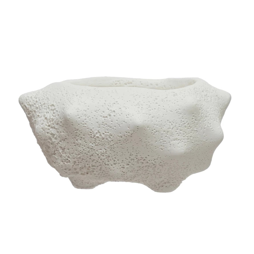 Our Distressed Terracotta Planter features a unique one-of-a-kind distressed white volcano glaze that effortlessly lends modern elements to any space. Whether outside or inside, this planter is perfect for any florals or plants. Each planter will vary slightly.