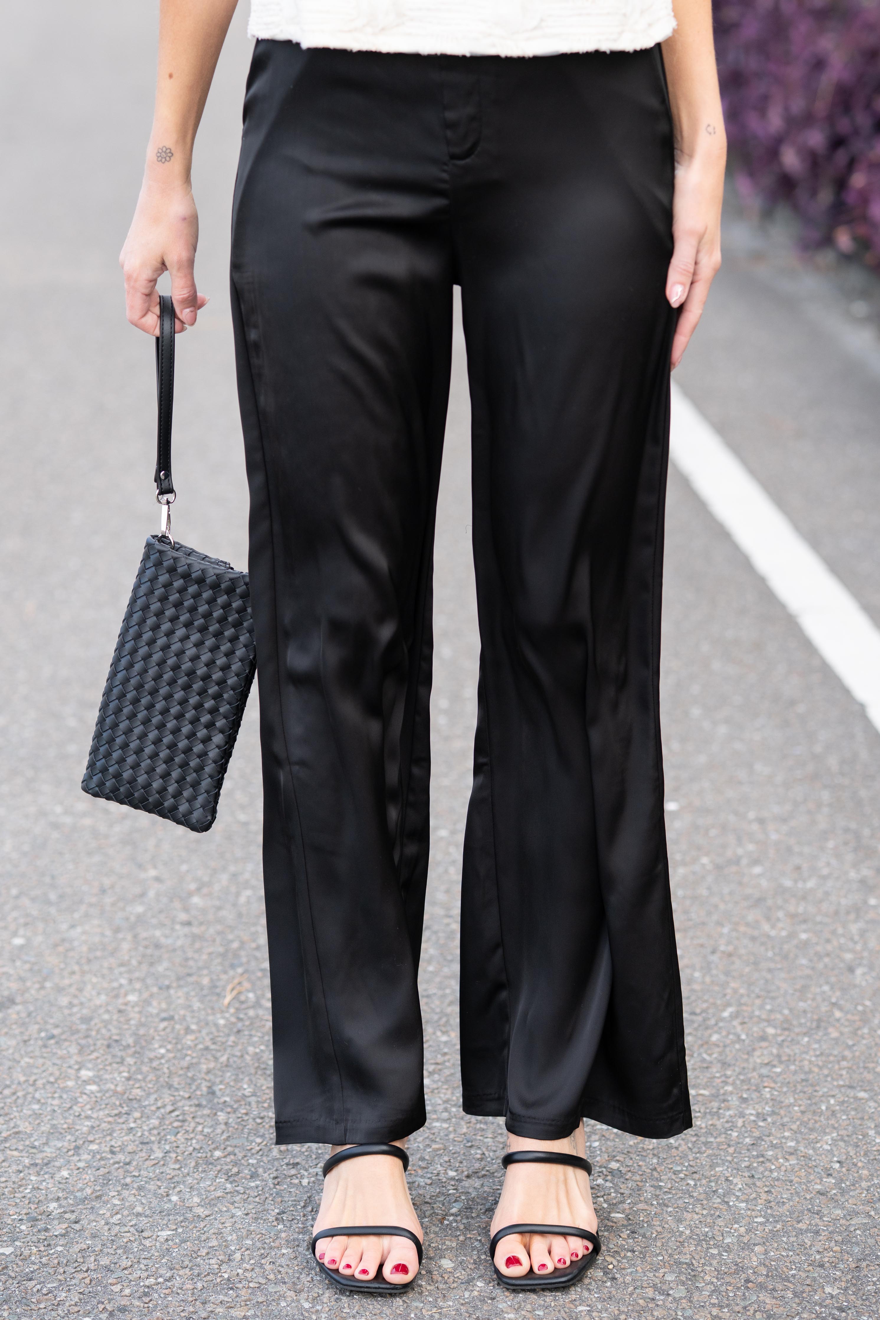 Elevate your wardrobe with these luxurious high-waist wide wide-leg satin dress pants. The smooth, lustrous fabric drapes beautifully while the high-rise waistband creates a flattering silhouette that elongates your frame.
