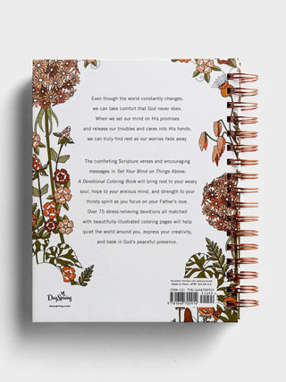While the world is ever-changing, God always stays the same. Set Your Mind Devotional Coloring Book provides a wonderful way to turn your thoughts from worry and fear, and toward God's hope and peace. Just grab your favorite artistic media, crayons, colored pencils, marker pens or paint and escape into the quiet peace of the presence of God.