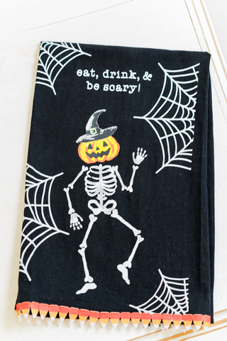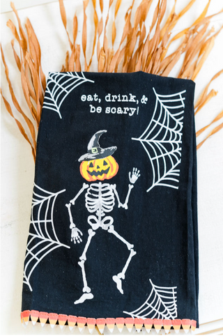 Skeleton Hallow Printed Towel is a charming addition to your kitchen or bathroom decor, perfect for the Halloween season or any time you want to add a touch of spooky fun.