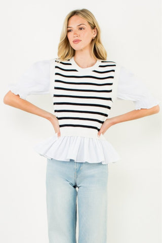 Striped Peplum Puff Sleeve Blouse